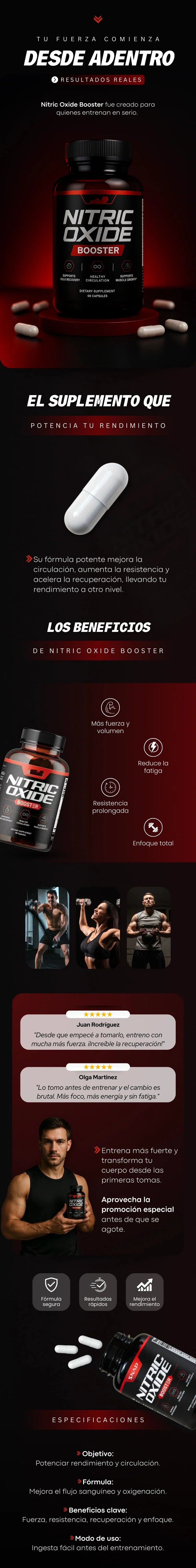 El óxido nítrico ayuda amejorar la circulación sanguínea, aumentar laresistencia física, potenciar elbombeo muscular, acelerar larecuperacióny aportarmás energíadurante el entrenamiento.
